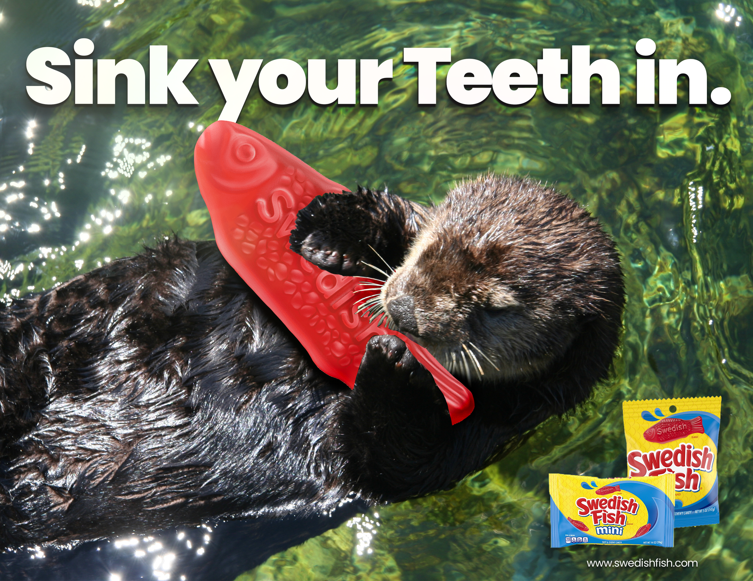Historically, Swedish Fish branding has been quirky and fun, with a generally unserious tone. My goal was to continue this theme by super imposing the pieces of candy in fish related photos. The surrealist scenes are meant to appeal to the wild imagination of young candy lovers, but especially those in the Pacific Northwest who are familiar with the culture of the Seattle Fish Market, and the wildlife surrounding it.
